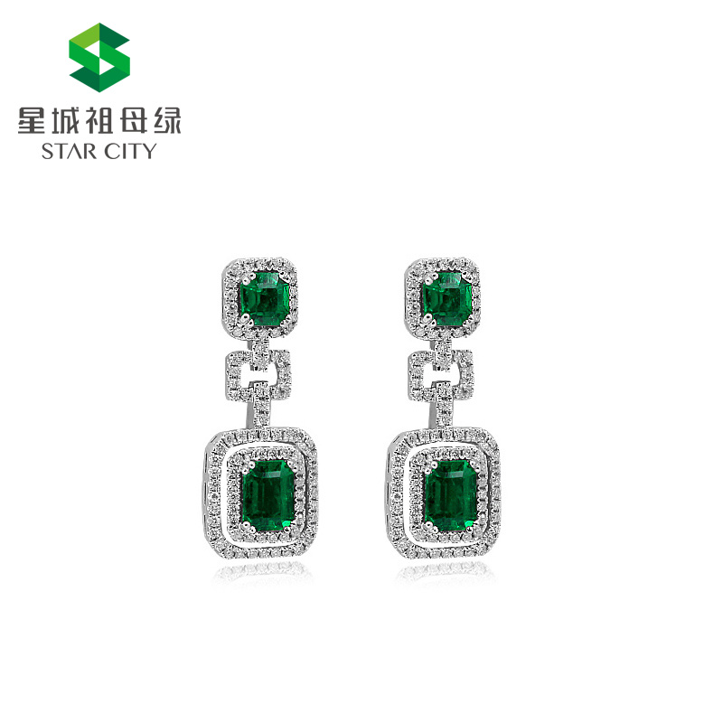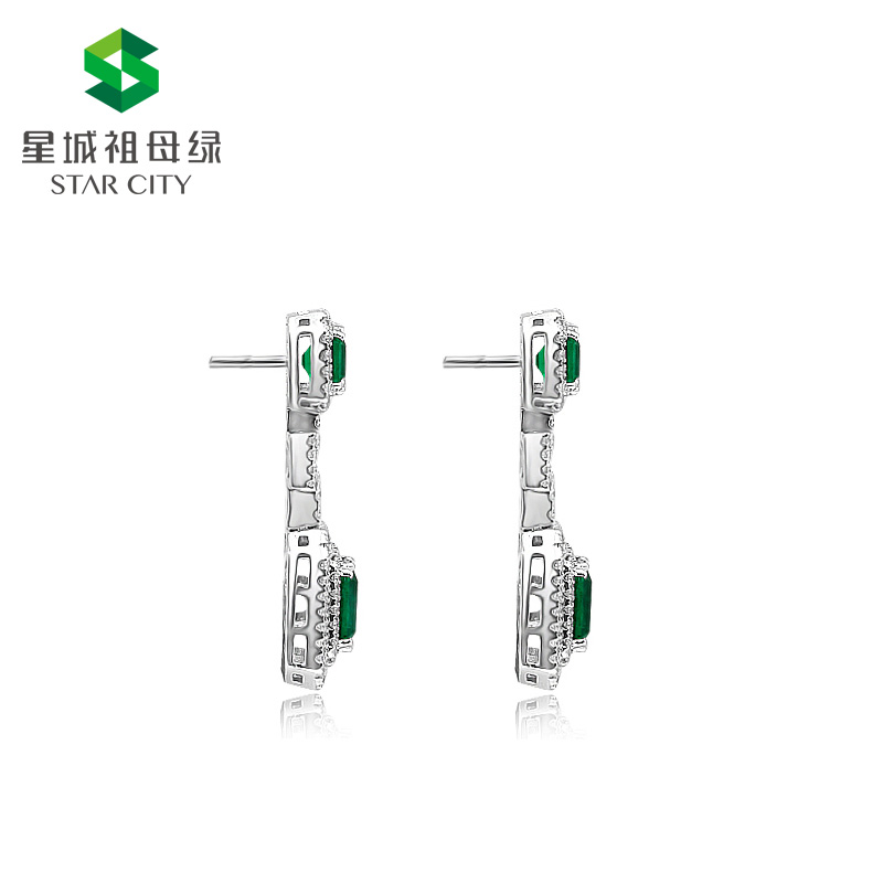 白18K祖母绿耳钉 主石:1.39/0.88克拉
