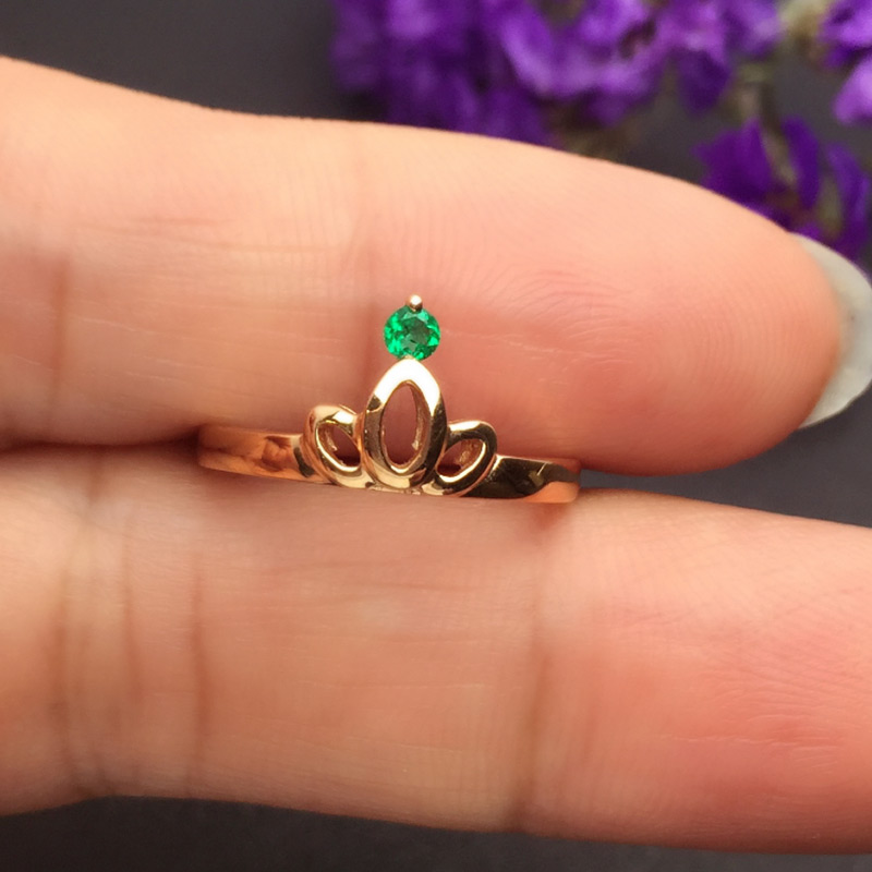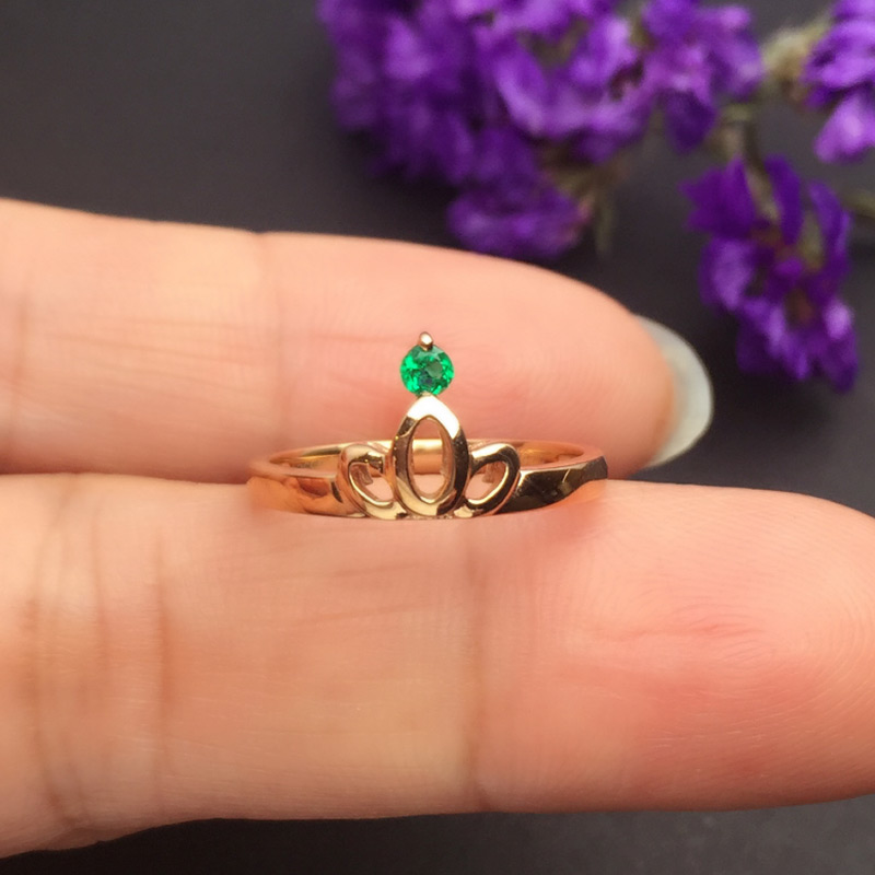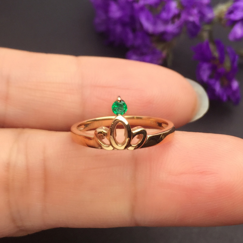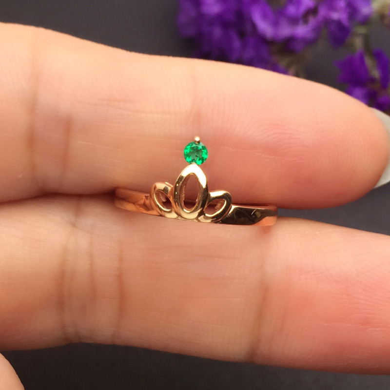 红18K金祖母绿戒指0.059ct 简单小皇冠戒指