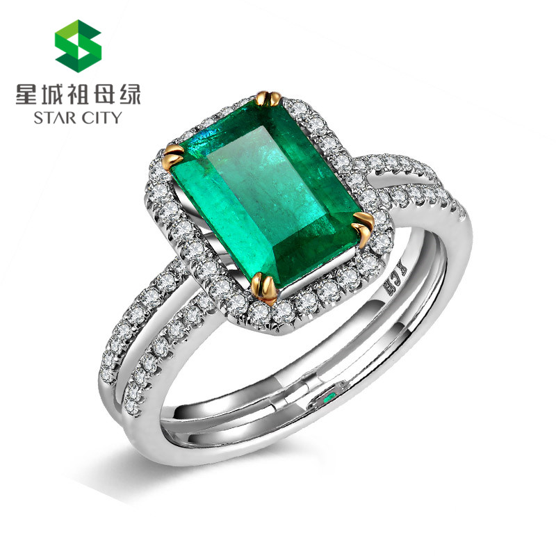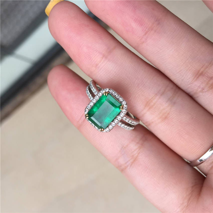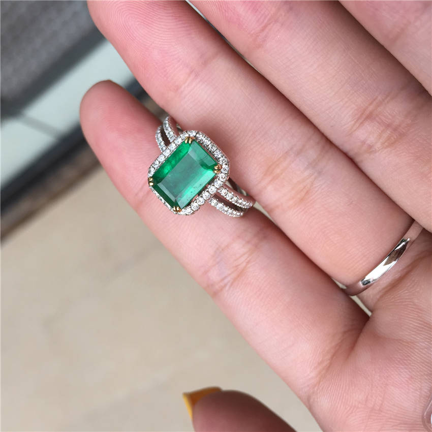 白18K金祖母绿钻石戒指1.71ct