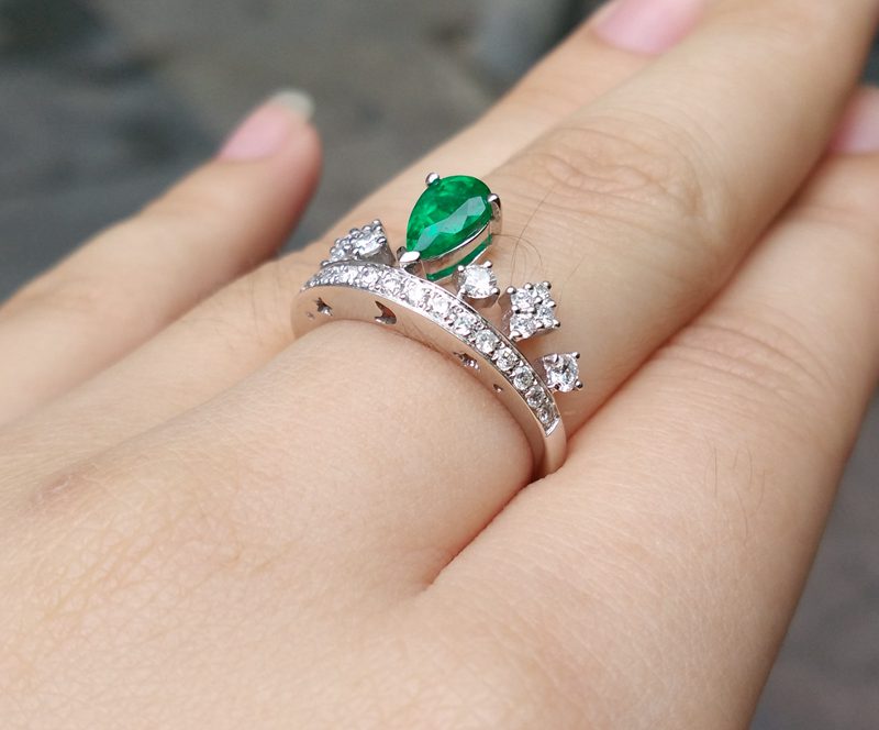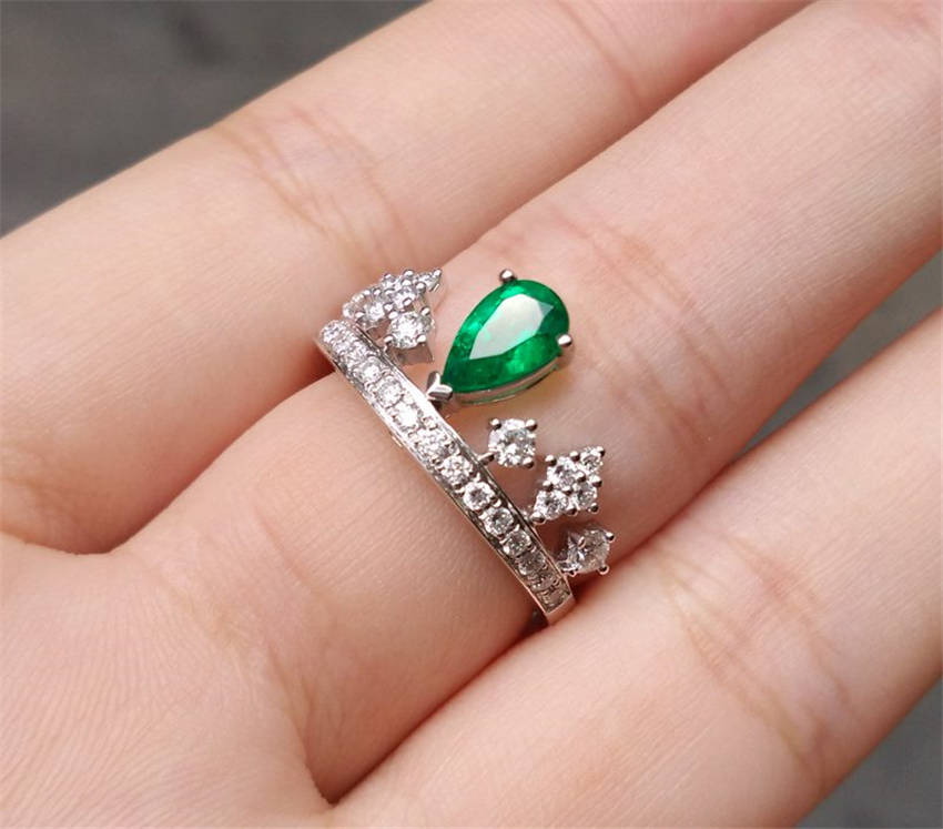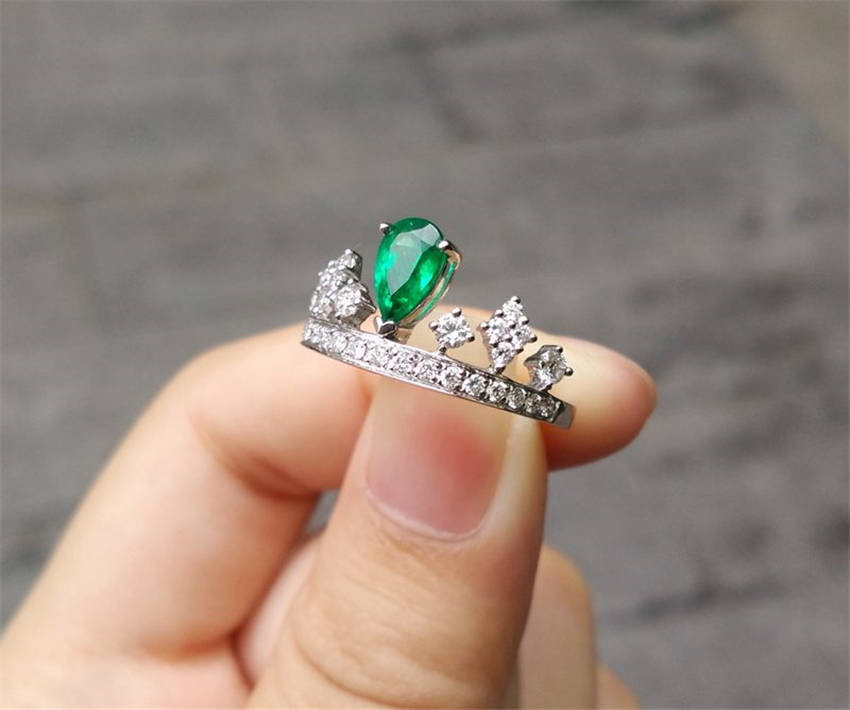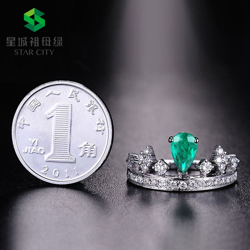 白18K祖母绿钻戒0.686 皇冠绿宝石戒指