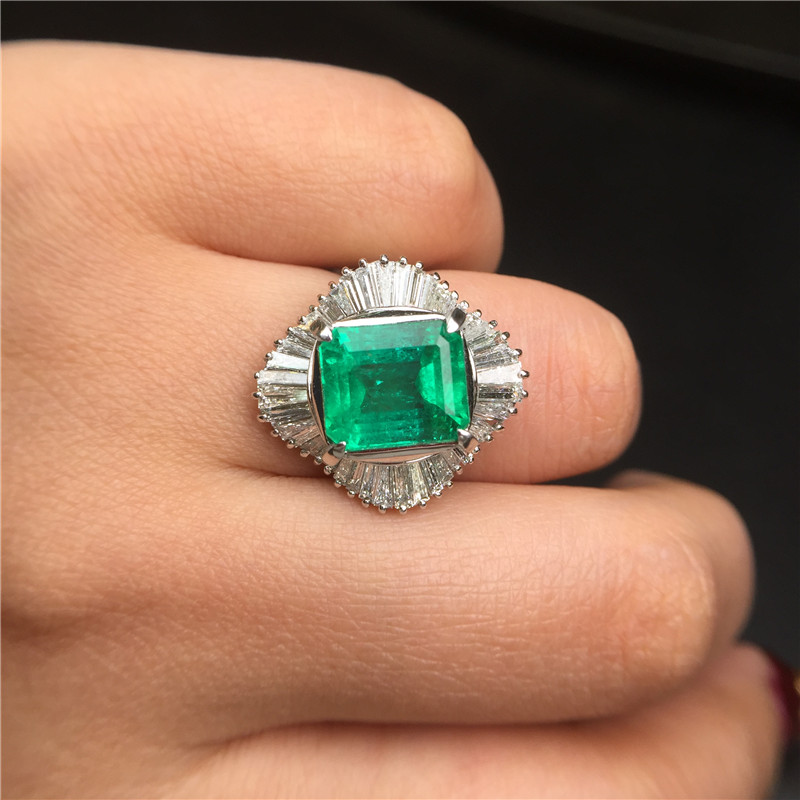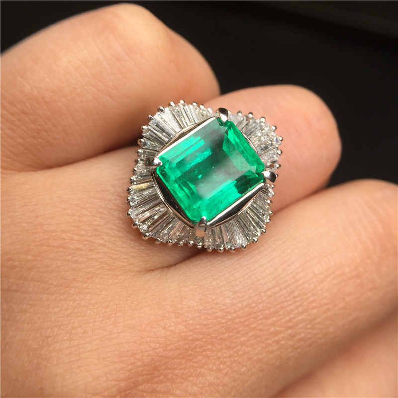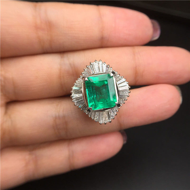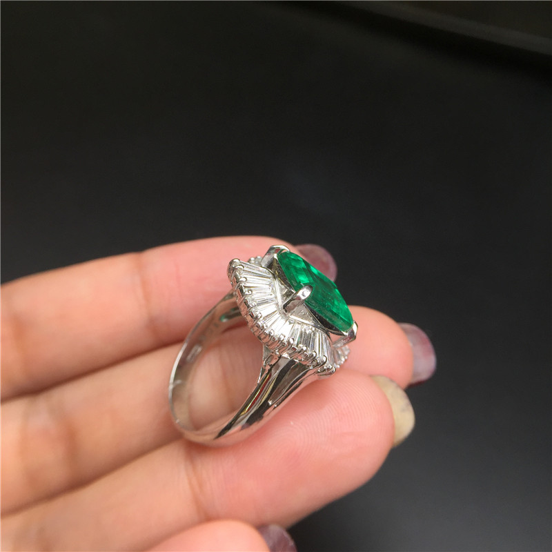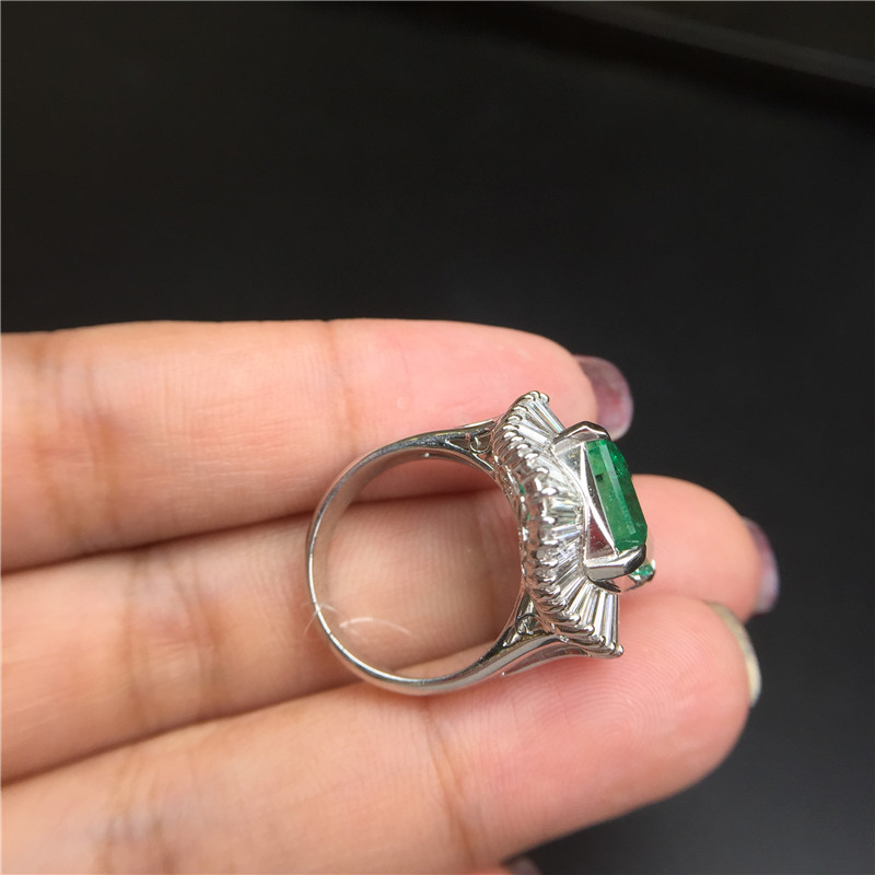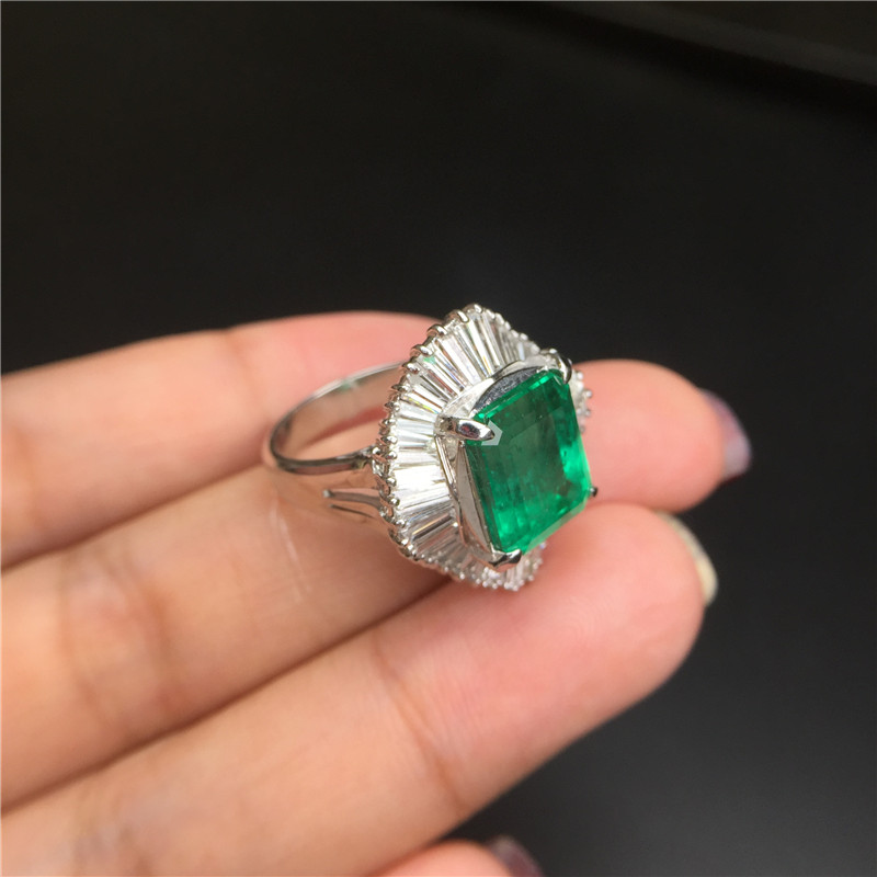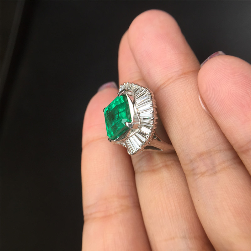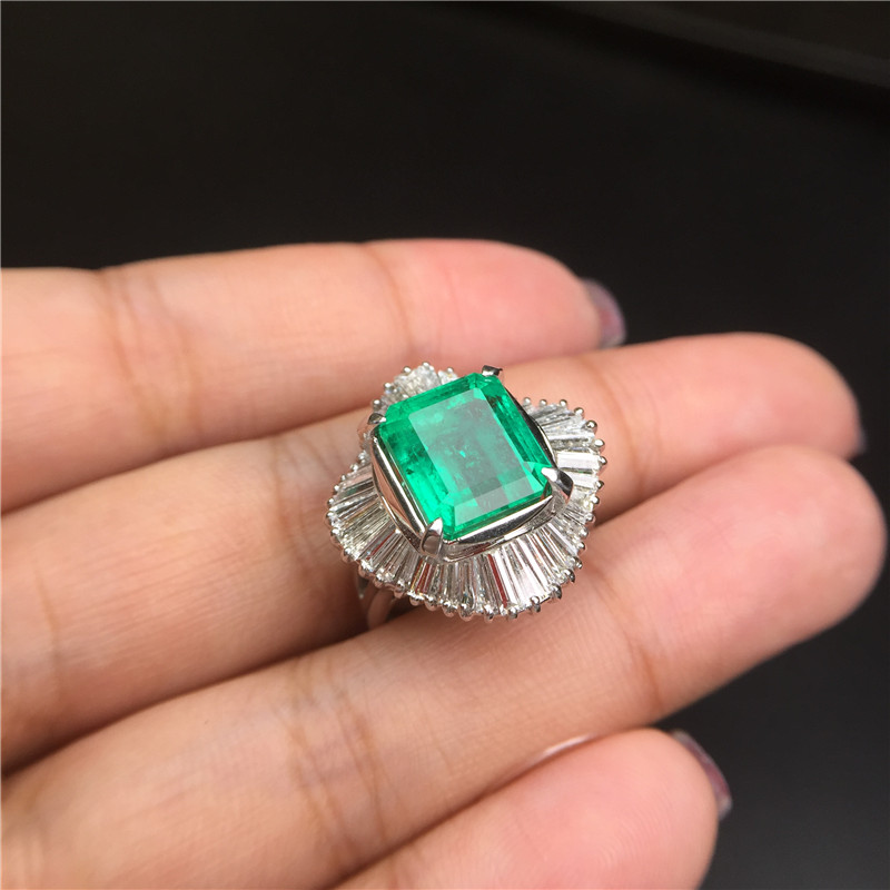 PT铂金条形钻石镶嵌哥伦比亚祖母绿戒指5.7克拉
