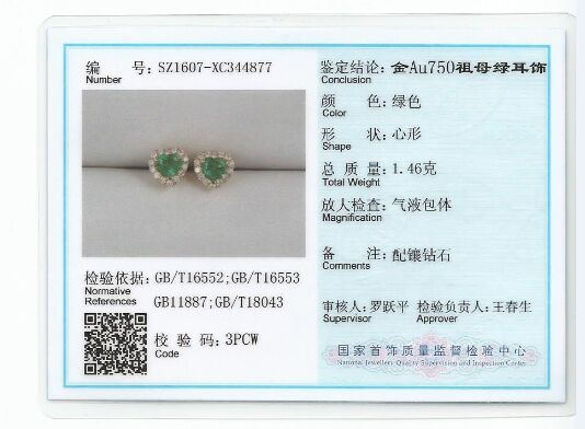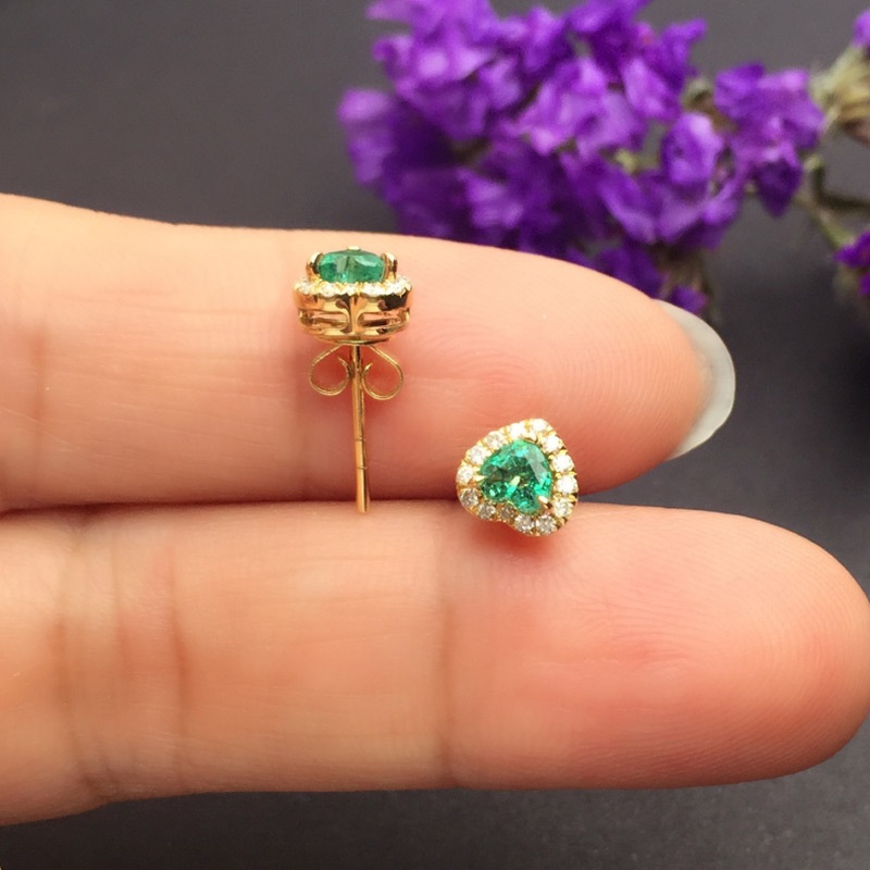 黄18K金祖母绿耳钉0.419克拉/2粒