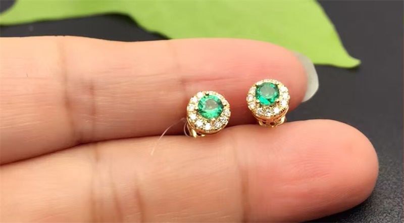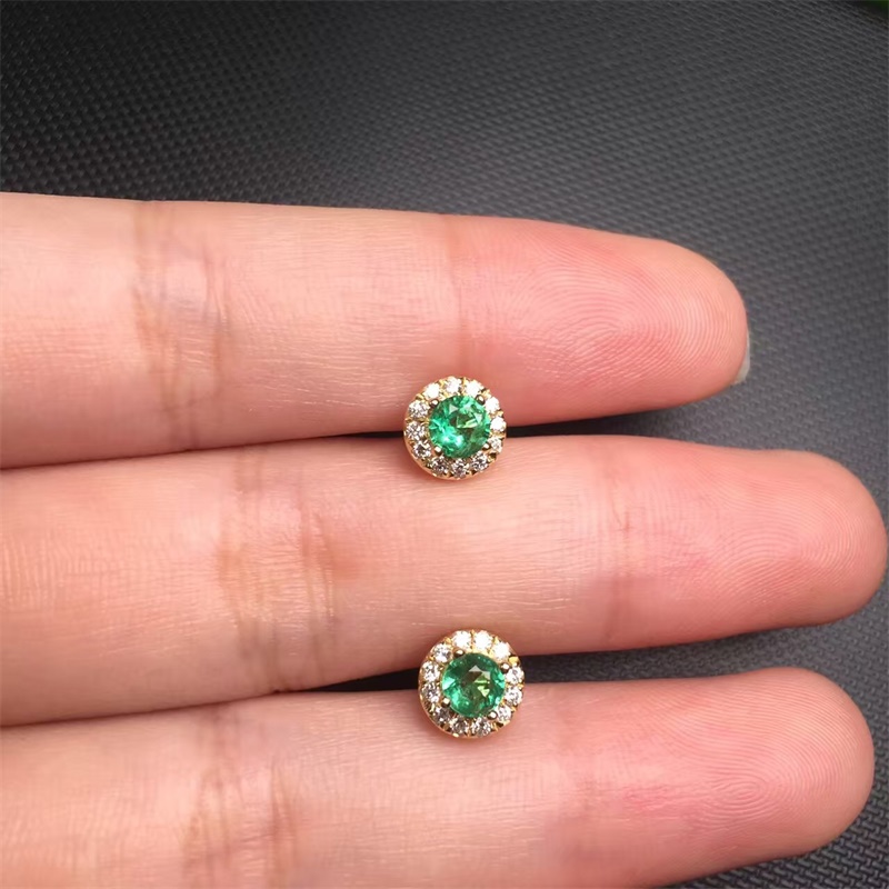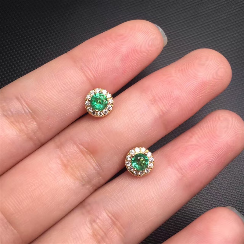 18K金祖母绿耳钉0.558克拉/2粒 赞比亚耳钉