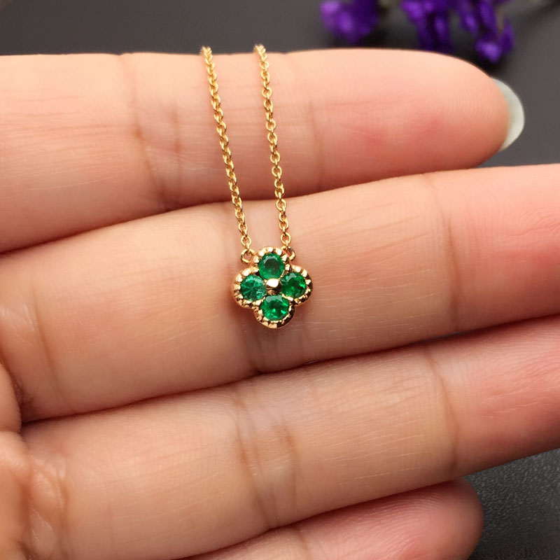 红18K金祖母绿链牌0.268克拉/4粒