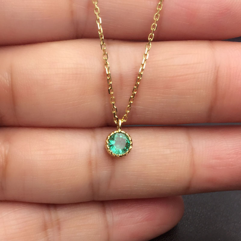 黄18K金祖母绿链牌0.323克拉