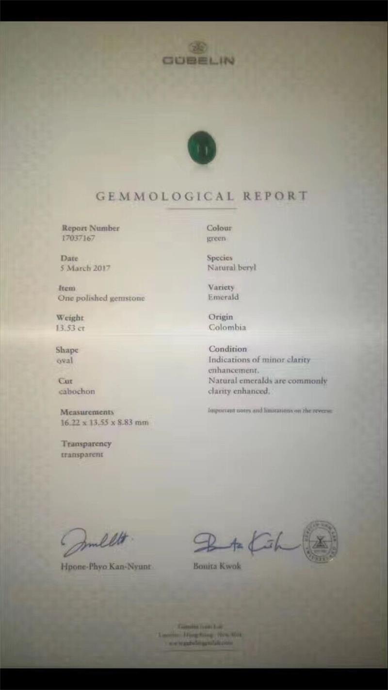哥伦比亚蛋面祖母绿裸石13.53克拉