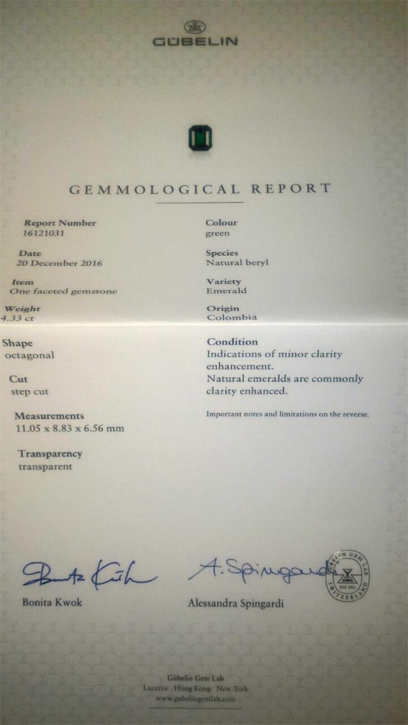 祖母绿裸石 木佐绿 4.33克拉 古柏林证书
