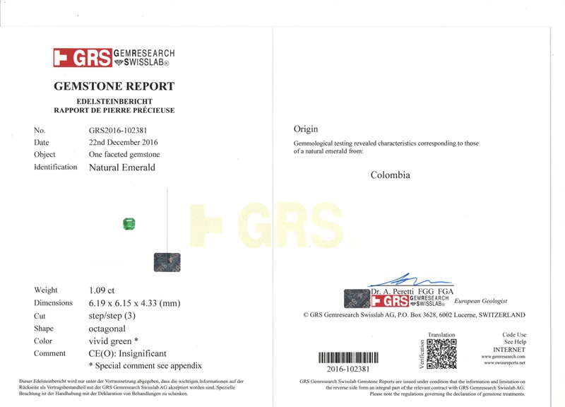 祖母绿裸石 木佐绿 1.09克拉 vivid muzo insignificant