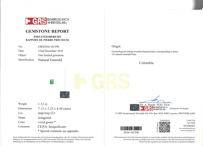 祖母绿裸石 木佐绿 1.12克拉 vivid muzo insignificant