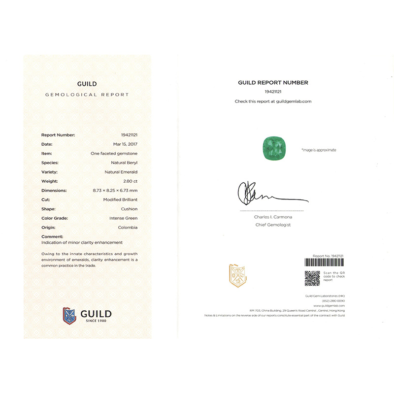 垫型祖母绿裸石2.80ct 哥伦比亚 INTENCE GREEN