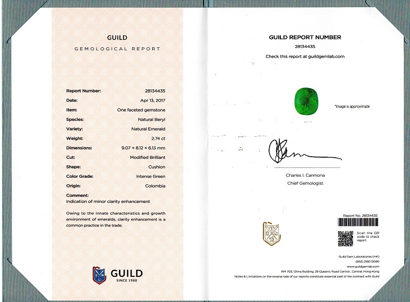 垫型祖母绿裸石2.74ct 哥伦比亚 MEDIUM GREEN