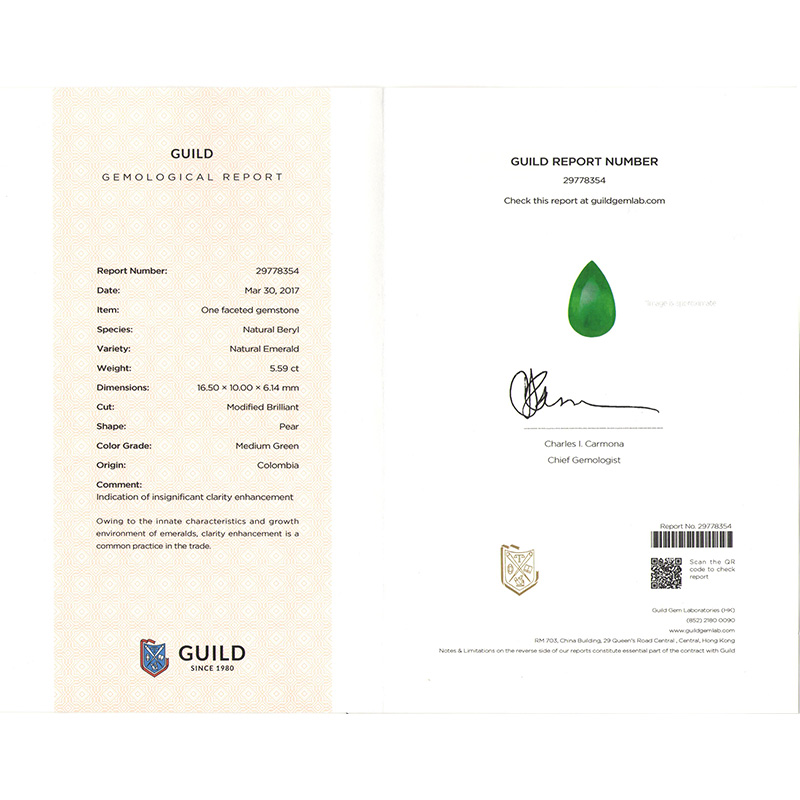 祖母绿裸石5.59克拉 哥伦比亚水滴宝石带国际证书