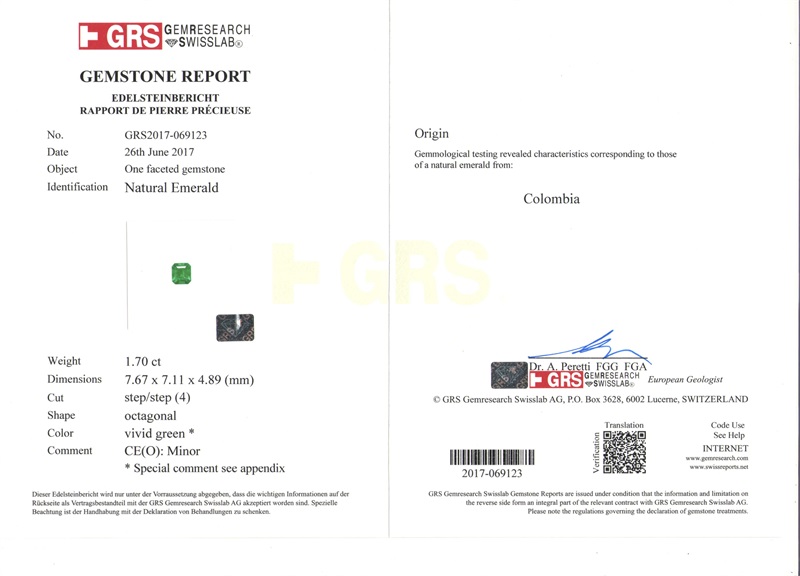 哥伦比亚祖母绿裸石1.70克拉 muzo minor