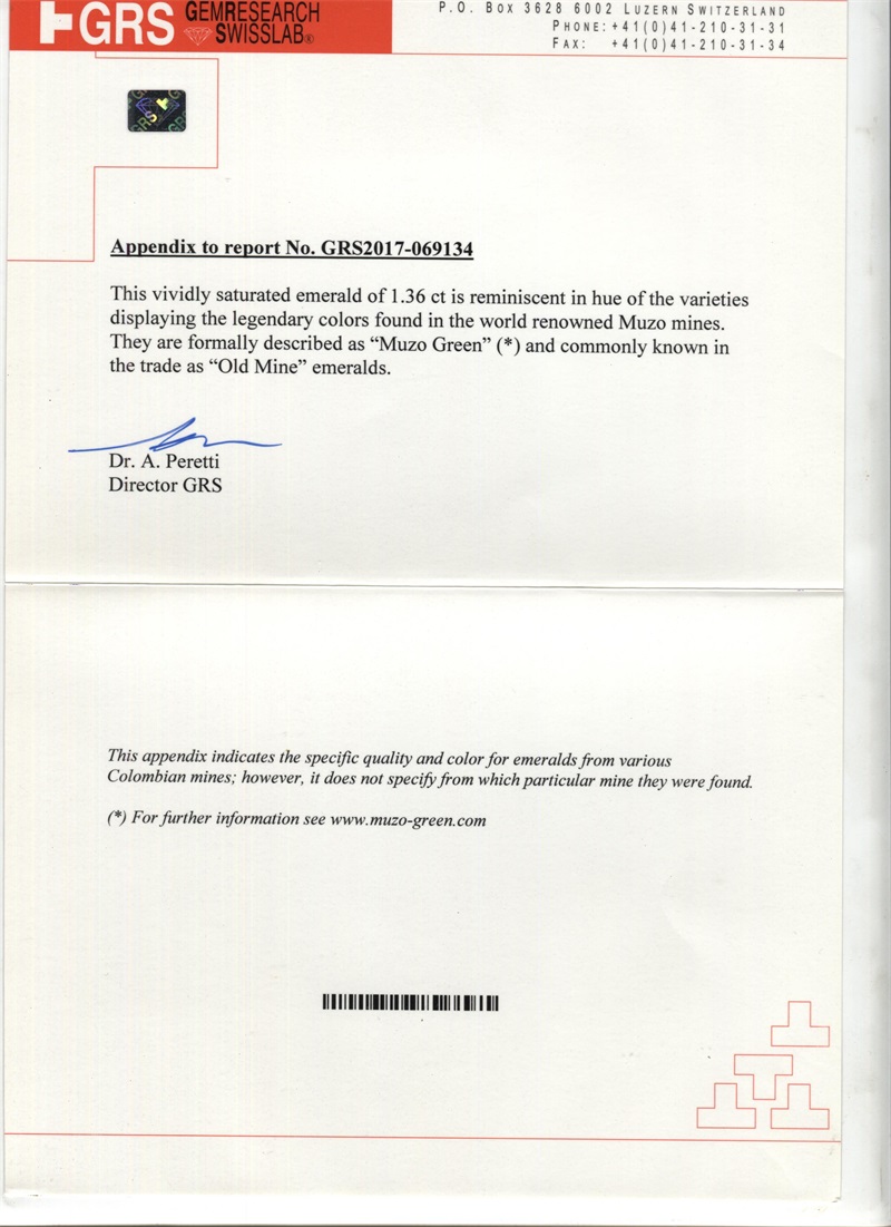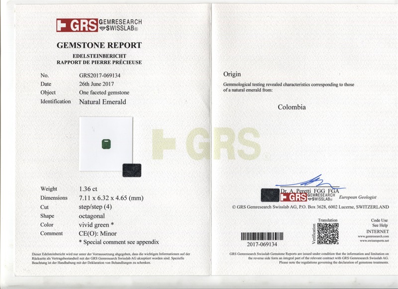 哥伦比亚祖母绿裸石1.36克拉vivid green muzo minor