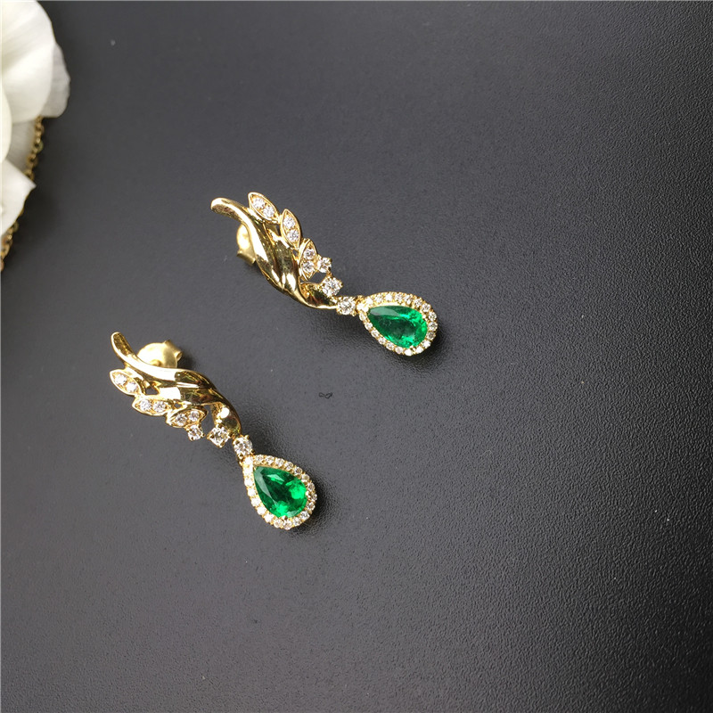 黄18K金祖母绿耳钉0.63ct/2p