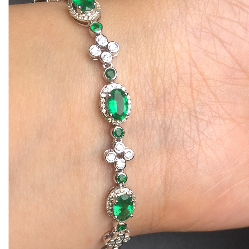 白18K金祖母绿手链1.628ct/5p 简约时尚宝石手链