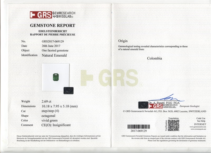 哥伦比亚祖母绿裸石2.69克拉vivid green