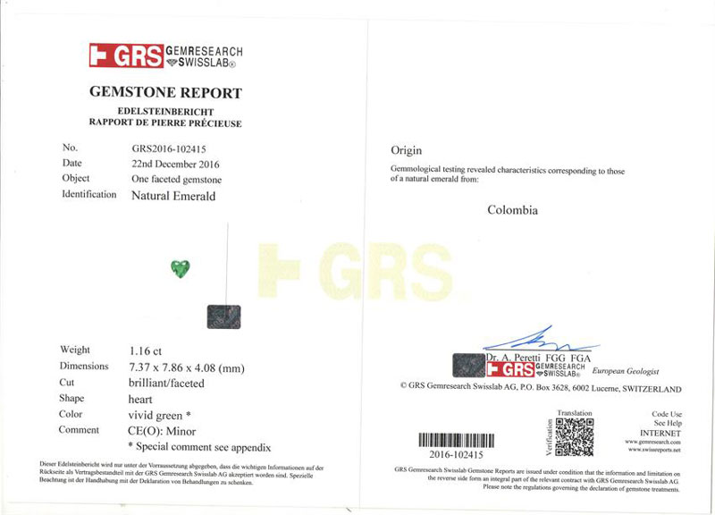 哥伦比亚祖母绿裸石1.16vivid muzo 心形 木佐绿
