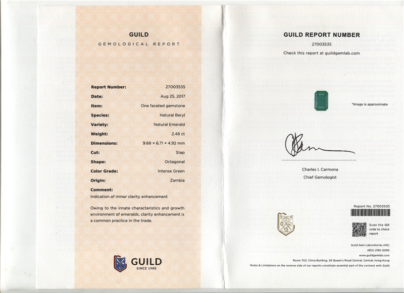 赞比亚祖母绿裸石2.48ct intense green minor