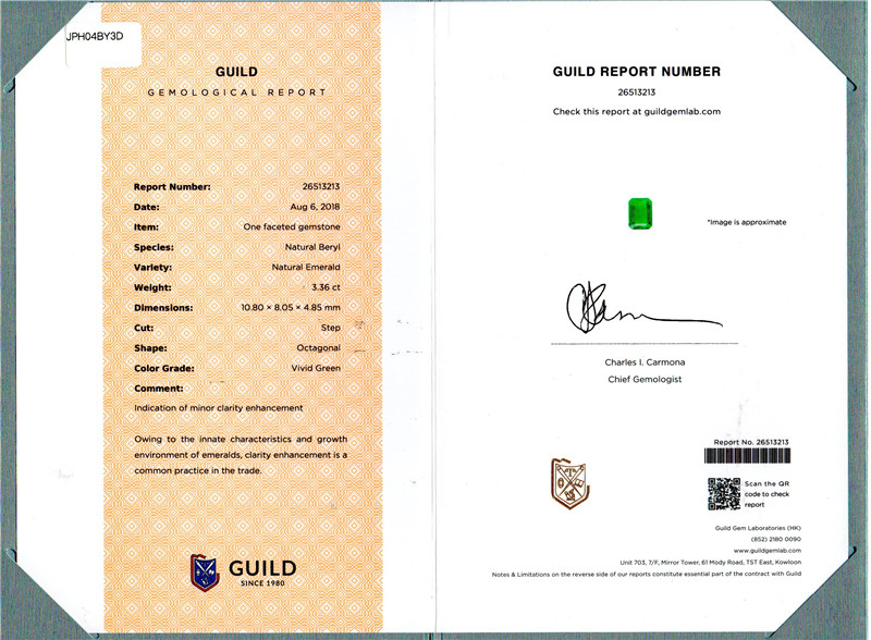 赞比亚祖母绿裸石 3.36ct Vivid Green Minor