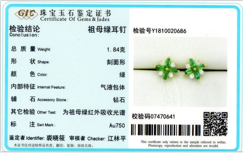 证书号:GIC:Y1810020686